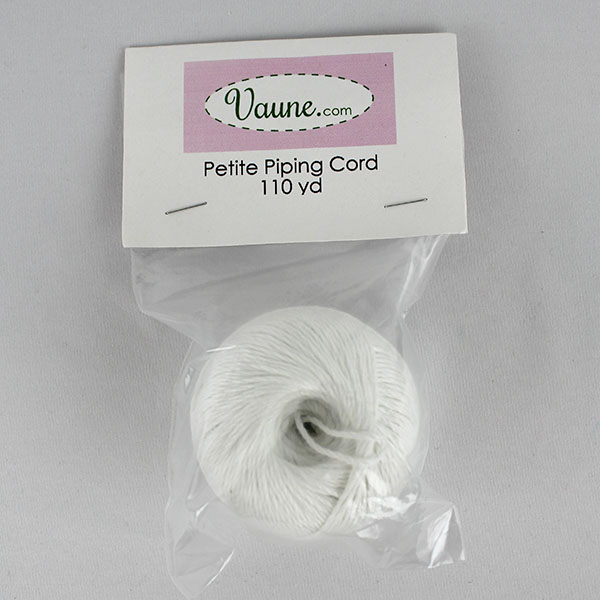 This petite piping cord is for creating bias-covered baby piping. It’s the perfect size for garments for babies, children, and adults. The 3-ply poly cord will not shrink. It works well with all types of fabric and is wound in a tight ball to prevent tangling. Each ball contains approximately 110 yards.