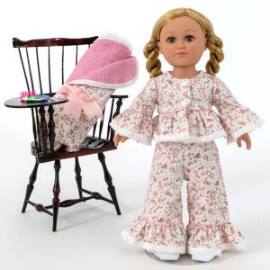 Your doll will be ready for her next sleepover with this cute sleeping bag created to match Taylor’s Ruffled PJs. The sleeping bag is lined with a coordinating print, machine quilted and bound with picot-edged, double-fold bias. A beautiful ribbon bow embellishment is the icing on the cake of this accessory project that fits most 18-inch dolls.