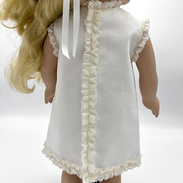 This beautiful A-line doll dress is heirloom perfection! Included in the 2023 Doll Club collection, this 18″ dress was designed by Trisha Smith.