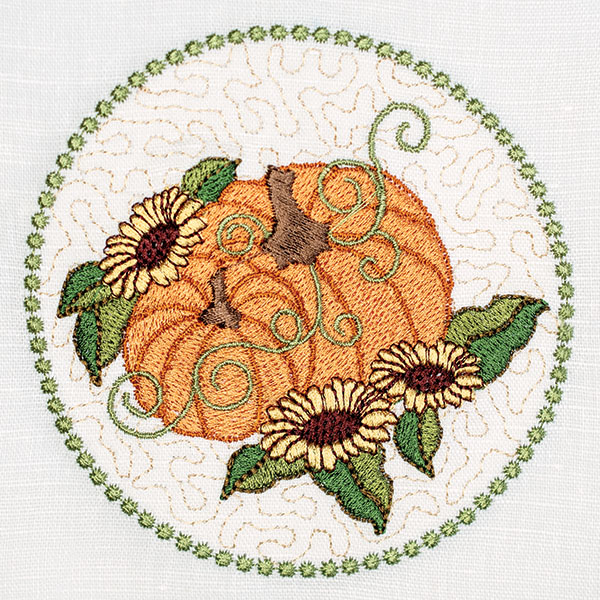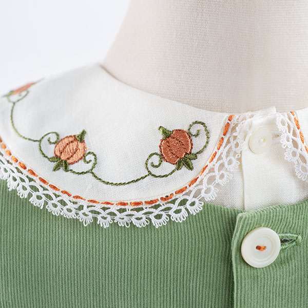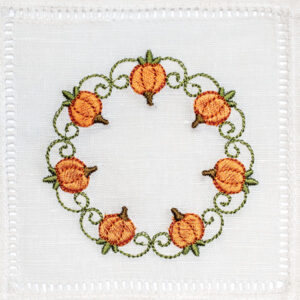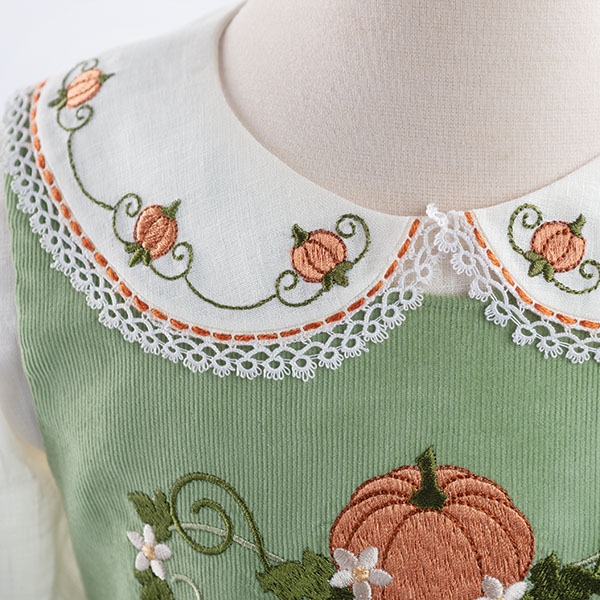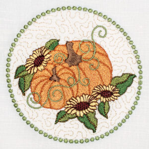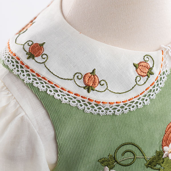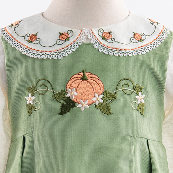 We’re thrilled to unveil our Fall Mini machine embroidery collection, designed and digitized by Kathy Drew. This delightful assortment is brimming with 14 charming motifs in multiple sizes, for a total of 23 design files ready to adorn your favorite fall projects. Picture plump pumpkins in all shapes and sizes, ready to adorn your favorite fall projects. Sunflowers, bursting with sunshine even as the days grow shorter, will add a touch of cheer. Don’t you love Kathy’s “Welcoming Fall” version of the Chloe jumper featured in our Autumn 2024 issue of Classic Sewing? The exquisite collar and bodice designs that brought that creation to life are also part of this collection! And the best part? They’re included in MULTIPLE sizes (2-8), ensuring you find the perfect fit for any project. The coordinating designs in this collection are just as delightful, each one a miniature masterpiece waiting to be stitched onto fall garments, tea towels, home décor accents, and anything else your imagination desires.