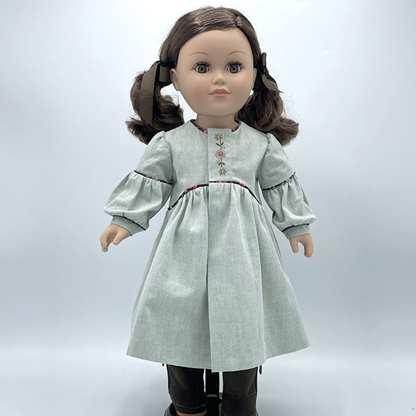 Featured in the 2023 Doll Club collection, this lovely doll dress features so many delightful details! Designed by Charlotte Potter, the design features French Bias Piping at the neckline and traditional piping on the sleeves and waistline. The bodice gracefully dips on the sides, giving this dress a unique look. The lantern sleeves are so easy to make and give a whimsical twist to traditional long sleeves. The dress closes in the front with an overlapping placket that is the perfect palette for embroidery! If a simpler look is desired, three tiny doll buttons, coordinated to match the piping color, can be applied to the outer placket as a charming alternative. The dress closes with Velcro to make dressing so easy! A matching child’s dress (sizes 8–14) is featured in the Autumn 2023 issue of Classic Sewing magazine.