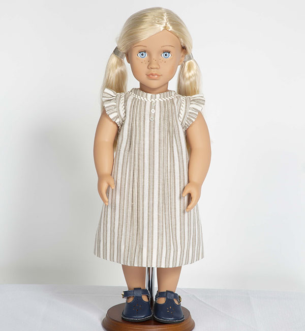 Included in the 2023 Doll Club collection, Karis is a sweet 18″ doll dress designed by Charlotte Potter. Featuring playful pleats, this simple A-line doll dress is so easy to make!