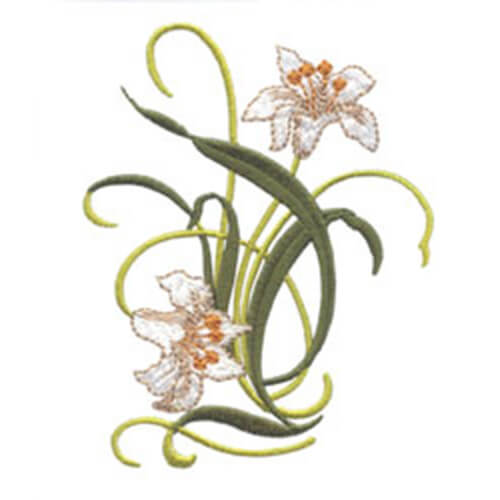 This pretty lily embroidery design is included inn both color and redwork versions.
