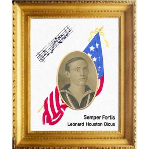 These two patriotic frames will make great presentations to memorialize some special person or event. The inside of the oval frame areas were digitized as cut-away so a special picture could be placed behind the finished frame. Or, if you do not want to cut away the inside oval, skip the cutting portion in the stitching sequences, and create a special scripture or message that can be stitched later on the fabric within the oval area. Refer to the Layout Section on the stitch order document for options on positioning one of the five major military service mottos provided.