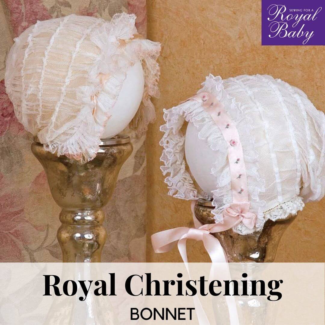 The Royal Christening Gown may be a priceless treasure, worn by generations of princes and princesses, but the inspiration bonnet we chose to pair with it cost a mere fifty cents at an estate sale. With its distinctive Victorian style in a combination of ribbon and netting, the remake by Cheryl R. Davidson is the perfect mate for our variation of the royal gown. The bonnet pattern is provided in sizes NB to 9 months, and the embroidery diagrams can be found in the techniques document included with this e-pattern. This pattern was excerpted from the book Sewing for a Royal Baby. Download this e-pattern instantly and start sewing this project today! Pattern Sizes: NB–9M