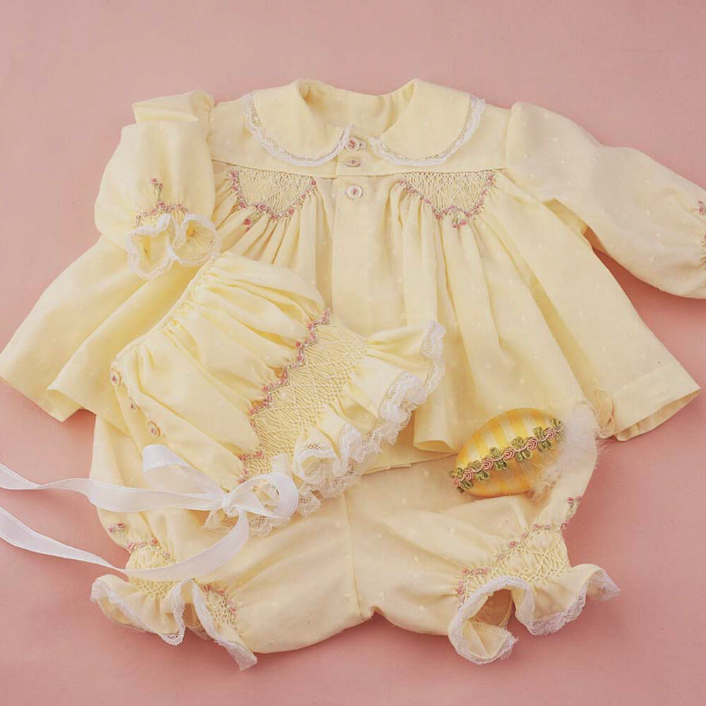 Riley Baby Ensemble: Coatdress, Bonnet & Bloomers Pattern (sizes 6M-24M) designed by Laurie Anderson