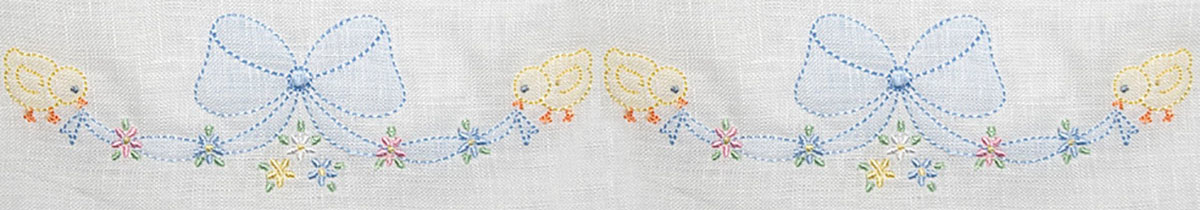 The Shadow-Embroidered Bow with Chicks and Florals machine embroidery designs are excerpted from the Baby Chicks & Bows Collection by Kathy Drew. Choose from two versiions: The single design is 5.84 x 2.09 inches and fits a 5×7 hoop, while the double design is 11.83 x 2.10 inches and fits a 8×12 hoop. The files will be available to download immediately on your order confirmation page. They can also be downloaded anytime through your Sewing Collection account. Log in to your account and then click on Individual Downloads to access.