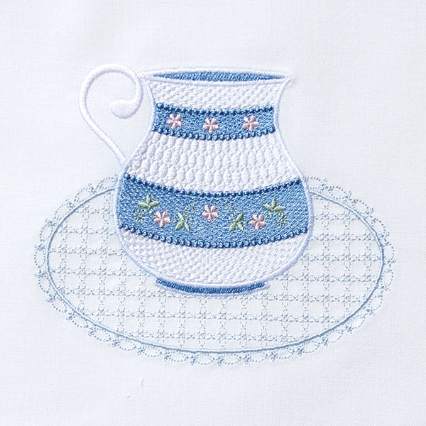 The Phyllis Collection by Kathy Drew includes eight charming machine embroidery designs featuring some of Phyllis Hoffman DePiano’s favorite things! With elements like blue-and-white dishes, delicate doilies, roses, piano keys, and a special bluebird in the window, these designs are perfect for adding a personal touch to home décor. The variety of creative stitch fills and the design size adds depth and texture, making them ideal for framing and embellishing pillows.