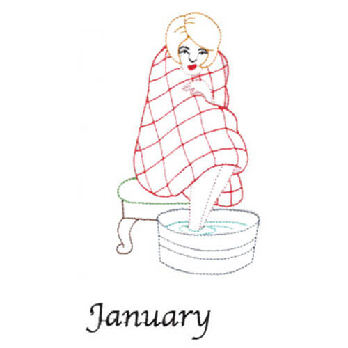 The weather outside is frightful, but this design is so delightful! This old-time “January” color-line quilt design (available in both 5×7 and split 4×4 formats) will make a perfect addition to quilt squares, blankets, scarves and robes.
